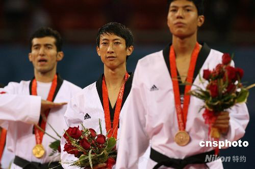 8月20日,中华台北选手朱木炎获得北京奥运会跆拳道男子58公斤以下级铜牌。中新社发 武仲林 摄