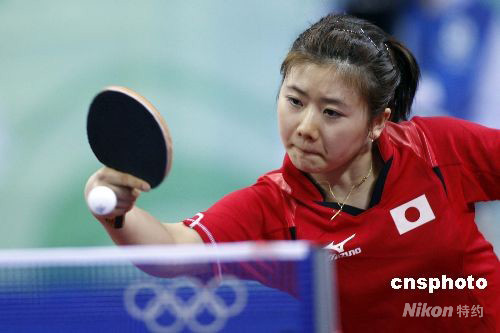 图:日本选手福原爱不敌张怡宁笑别奥运赛场