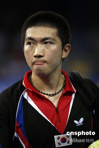 柳承敏输球后黯然神伤。