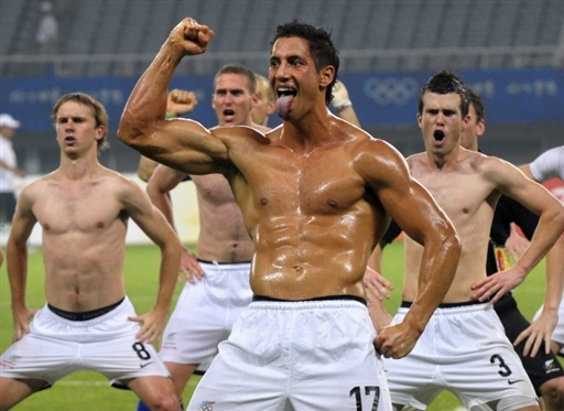 比利时国奥队员脱去上衣大跳土著舞,男色时代“秀”身材。