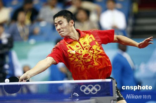 乒乓球男单王励勤4-0战胜波兰选手晋级八强
