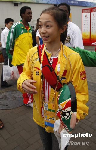 图:奥运冠军杨伊琳奥运村里交换纪念章