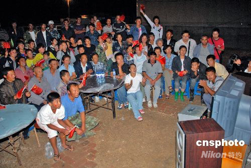 8月22日晚,辽宁凌海市大有乡和白台子乡,乡亲们在电视机前为中国女子曲棍球队员赵玉雕和李红霞欢呼加油。最终,中国女子曲棍球队夺得亚军,取得历史性突破。