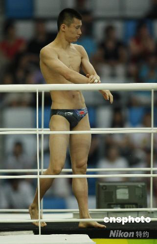8月23日,男子十米跳台跳水半决赛结束,中国选手周吕鑫以526.20分名列第三位,顺利进入决赛。中新社发 杜洋 摄