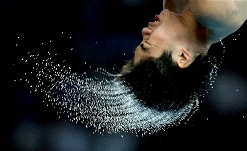 8月23日,中国选手火亮在北京奥运会男子10米跳台比赛中,做空中旋转时甩出了美丽的水花。