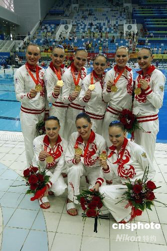 图:俄罗斯花游队在集体项目决赛中获得金牌