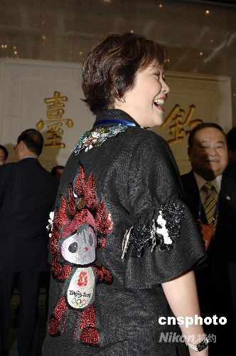 泰国华侨丘夏莉身穿“福娃装”亮相钓鱼台国宾馆。中新社发 王东明 摄