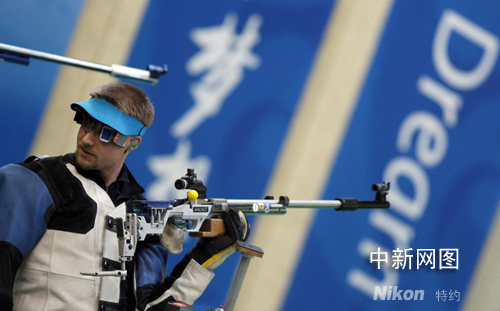 美国神枪手埃蒙斯因为自创的“歪把枪”法,最后一枪再次射偏“梦想”,继雅典奥运会后,又再次拱手让出只要正常发挥就“唾手可得”的男子50米步枪三种姿势金牌。 中新社发 盛佳鹏 摄