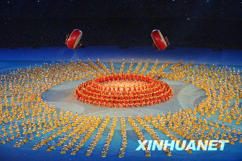 闭幕式首节表演《相聚》 200名鼓阵表演者如礼花绽放