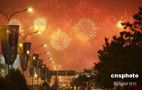 8月24日晚,第29届夏季奥运会闭幕式在国家体育场“鸟巢”举行,在五彩缤纷飞腾的烟花中,北京奥运会圆满闭幕,市民游客万众观看。