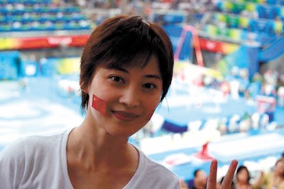 组图:明星粉丝当奥运啦啦队 梅婷脸贴国旗助威(4)