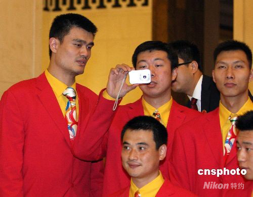 8月26日,2008年北京奥运会中国体育代表团总结大会在北京人民大会堂金色大厅举行。图为中国男篮队员参加北京奥运会中国体育代表团总结大会。 中新社发 廖文静 摄