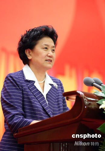 中共中央政治局委员、国务委员、北京奥组委副主席刘延东致辞。 中新社发 廖文静 摄