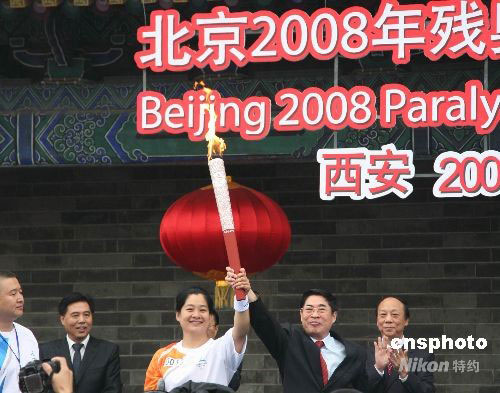 中新网8月29日电 上午9时许,随着首棒火炬手、全国残疾人十佳运动员、自学成才标兵的张辉高擎“祥云”火炬跑出设在西安市东门城墙城楼的起跑点,北京残奥会火炬传递“中华文明线”首站西安站正式拉开帷幕。