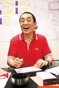 张艺谋一见军人,两眼放光,他一边忙不迭地在我们拿来的纪念封上签字,一边滔滔不绝地给我们讲了起来。