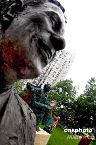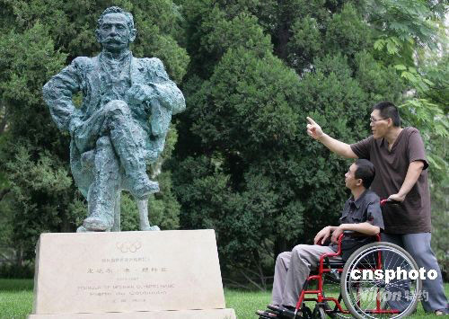 8月29日,顾拜旦、萨马兰奇、罗格雕像亮相东城区东四奥林匹克社区公园。顾拜旦雕像为坐像,高195厘米,花岗岩基座高70厘米,萨马兰奇和罗格雕像为半身胸像,像高分别为68厘米和65厘米,花岗岩基座高为120厘米。雕像全部由北京金台艺术馆馆长袁熙坤亲手制作,在残奥会开幕前安放在东四奥林匹克社区公园,供各国残奥会运动员和社区居民免费参观。中新社发 杜洋 摄