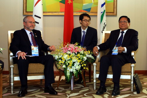 全国政协副主席、北京奥组委执行主席邓朴方,北京市委副书记、市长、北京奥组委执行主席郭金龙,中残联副主席、北京奥组委执行副主席汤小泉,北京市政协副主席赵文芝、北京奥组委执行副主席兼秘书长王伟会见时在座。