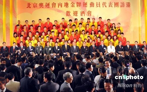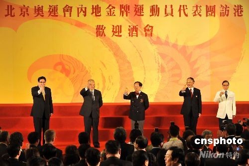 八月二十九日晚,香港特区政府在会展中心举行酒会欢迎北京奥运会內地金牌运动员代表团访港。中新社发 邓庆乐 摄