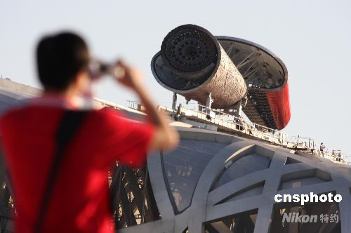 图:“鸟巢”火炬塔检修迎接残奥会