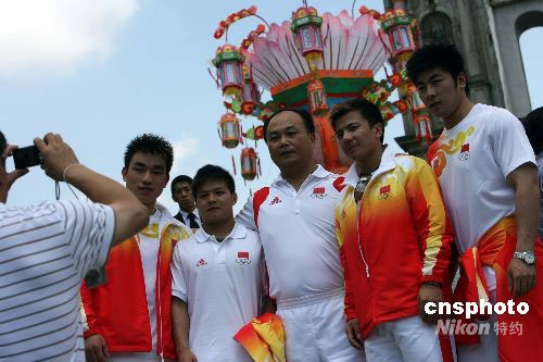 图:北京奥运内地金牌选手在澳门大三巴留影(2)
