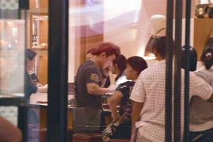 王皓在名店内打电话挑手袋款式。(图片来源:澳门日报)