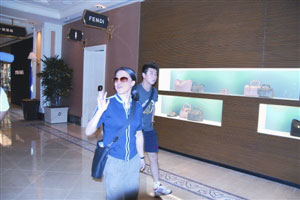 在永利转悠一圈后,王皓、王楠锁定专卖手袋的某名店,在店内逗留约20分钟后,王楠首先有“斩获”。记者欲走近问王楠有何收获,王楠即提着“战利品”、戴着墨镜急步离开,往其它名店“搏杀”。王皓则在名店内不断挑选合适手袋,更全程打手提电话,不知是否打给女朋友问款式。