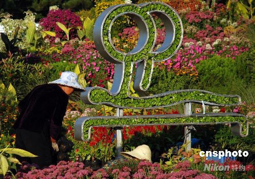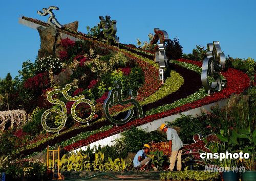 2008年9月1日,20个残奥会运动造型标志亮相北京天安门广场。据介绍,今年的广场摆花是历史上最长的一次,分三个阶段制定主题,一直持续到10月份。中新社发 杨慧峰 摄