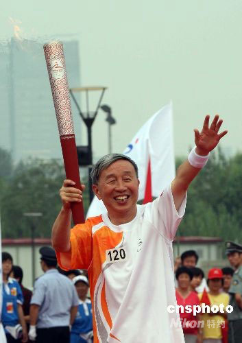 最后一棒火炬手赵济华结束传递。