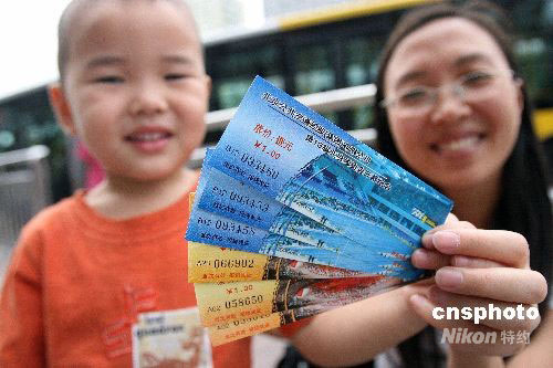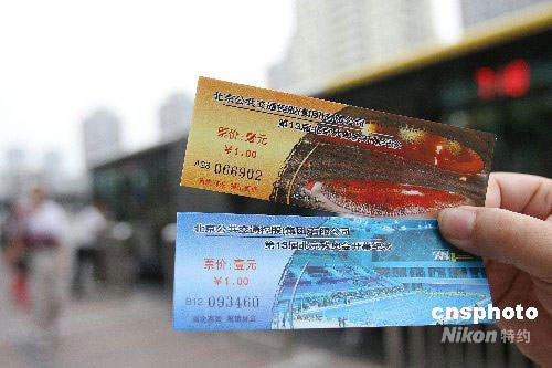 9月6日,为庆祝第13届残奥会在北京召开,北京公交集团公司在所属线路车上发售残奥会开幕纪念车票,市民们一大早就热烈抢购。中新社发 陈晓根 摄
