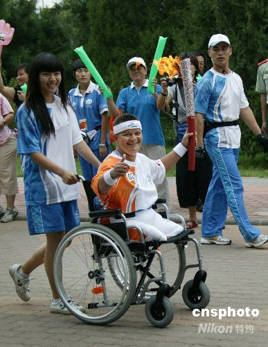 图:残奥圣火北京传递 3成火炬手为残疾人士
