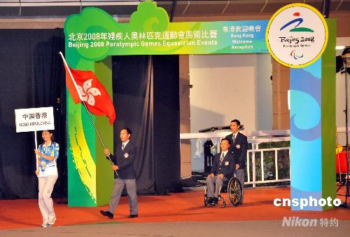 九月六日,北京二零零八年残奥会马术比赛开幕式在香港举行欢迎晚会,香港残奥马术选手叶少康在运动员入场式上进场。中新社发 邓庆乐 摄