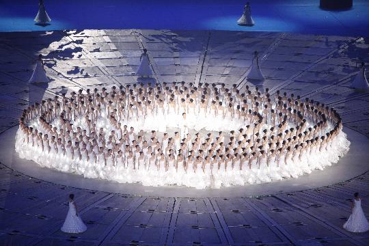 9月6日,北京2008年残奥会开幕式在国家体育场“鸟巢”举行。这是聋人舞蹈演员在开幕式上表演舞蹈《星星,你好》。新华社记者 廖宇杰 摄