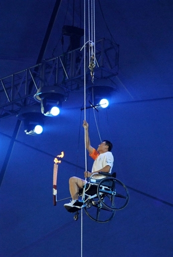 残疾运动员侯斌点燃残奥会圣火主火炬台