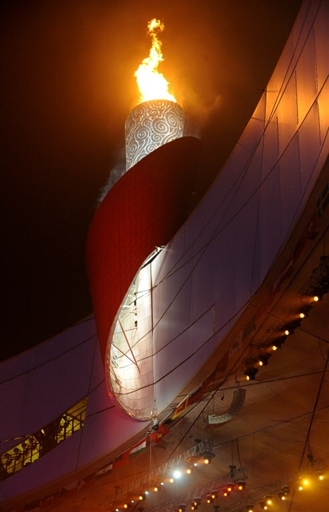 9月6, 北京残奥会开幕式在北京国家体育场隆重举行,残疾人跳高运动员侯斌点燃残奥会圣火主火炬台。