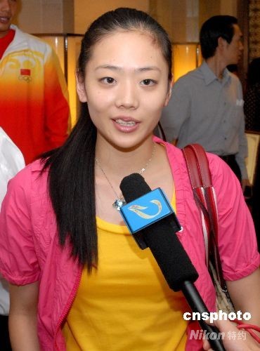 2008年9月6日,湖北省奥运军团载誉归来。在湖北省委、省政府为奥运健儿召开表彰大会的间隙里,世界体操名将杨威的妻子杨云,成了现场记者的“焦点人物”。虽然杨威和杨云已经登记结婚,但为了备战北京奥运会推迟了婚期,“卧薪尝胆”四年的杨威一举获得男子团体和个人全能金牌。中新社发 楚天行 摄
