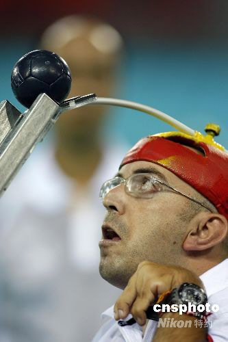 9月7日,北京残奥会硬地滚球比赛,葡萄牙选手阿尔曼多-科斯塔在混合单打BC3级别小组赛中以8比0战胜西班牙选手。图为葡萄牙选手阿尔曼多-科斯塔在比赛中。中新社发 杜洋 摄