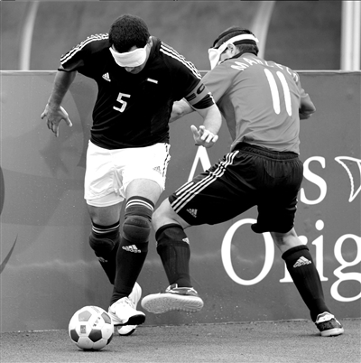 阿根廷(左)与西班牙的盲人球员在比赛中。 新华社发