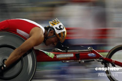 9月8日,北京残奥会男子5000米-T54的比赛中,澳大利亚选手费恩利以10分13秒21的成绩在预赛中就打破了世界纪录。 中新社发 杜洋 摄