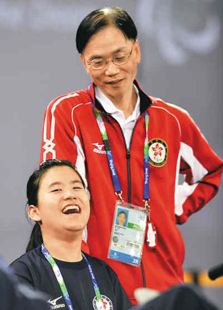 4年前雅典残奥会,首次参赛的中国香港硬地滚球队一举摘得两金,可惜海莹无缘金牌。“从雅典回来之后她一直很勤奋,就为了这块金牌。在香港的时候,我们每周二、四、六晚上训练,每次训练两小时,遇到快要比赛的时候,周日会全天训练。”郭克荣动情地说:“这枚金牌是我们两个人的梦想,终于实现了。”