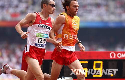 加拿大选手贾森·邓克利(左)在领跑员的引导下进行比赛。新华社记者 张燕辉 摄