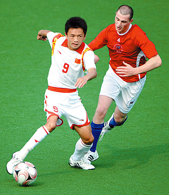 平均年龄20岁出头、集训时间不到两年的中国脑瘫足球队,今天以2∶10负于英国队。他们赛前就知道自己远不是那些平均年龄近40岁、配合时间长达十余年的对手,但他们坚持拼完整场比赛,他们只想告诉观众,他们绝不会放弃。