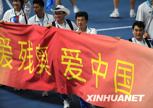 韩国代表团举着“爱残奥 爱中国”的横幅入场。新华社记者 索朗罗布 摄