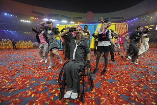 9月17日,北京2008年残奥会闭幕式在国家体育场“鸟巢”举行。图为在闭幕式上的伦敦八分钟演出。