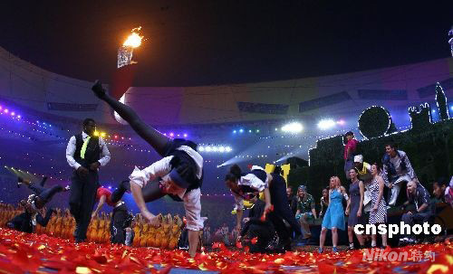 9月17日晚,北京2008年残奥会闭幕式在国家体育场举行。在闭幕式上下届举办城市英国伦敦进行了“伦敦八分钟”表演。 中新社发 杜洋 摄