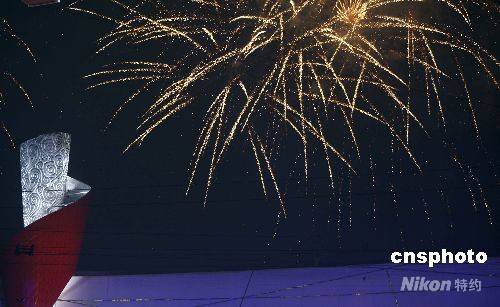 图:残奥闭幕式上绚丽焰火映照“鸟巢”