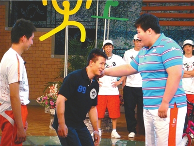 近日,在央视和中国文体明星助威团《国庆七天乐,参与奥运更快乐》拍摄现场,奥运会女子78公斤级柔道冠军佟文骑着自行车来到了“奥林匹克花园社区”,刚从车上下来就看到同是奥运会体操吊环冠军的“老乡”陈一冰随便把垃圾一扔,看在眼里的佟文很是不满,“怎么乱扔垃圾啊!”佟文说着一个大巴掌把陈一冰给拍趴下了!还是主持人毕福剑考虑周到,把两人叫到一边说道:“咱们国庆要七天乐啊!”(李昊)