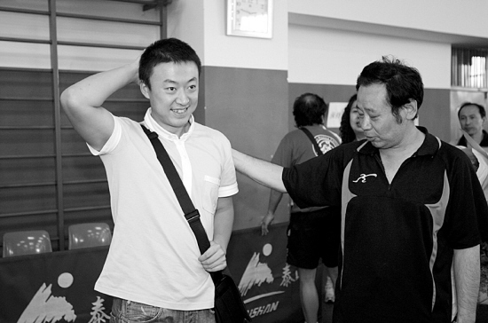 市体校还有一个9岁的“小马琳”。这个“小马琳”名叫夏嘉鸣,是马琳舅舅的儿子。昨天下午,马琳耐心地教起了“小马琳”。在与表弟练习了几下推挡后,张惠忠接过了球拍,而马琳则站在一边专心地观察夏嘉鸣打球。“别紧张,慢慢来!”夏嘉鸣有些紧张,马琳在一边轻声提醒。“手腕再向前送一点。”看着表弟几次失误,马琳走上前去手把手地教。如何评价表弟的水平?马琳笑了:“现在评价他还早,怎么也要过几年才能看出来,现在对他来说,最重要的是勤奋。”