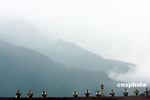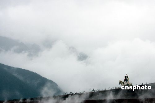 七月二十三日,继桂林阳朔的《印象·刘三姐》之后,由张艺谋、王潮歌、樊跃联合导演的又一实景演出项目《印象·丽江·雪山篇》在云南丽江玉龙雪山的山脚下正式对外公演。“雪山篇”的演出一共起用了近五百名来自十个少数民族的非专业演员以及一百匹云南矮脚马,整个演出以雪山为背景,以民俗文化为载体,巧妙地把自然景观、民俗文化融入到一场原生态的表演实景中。中新社发 盛佳鹏 摄