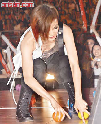 至于化身“纯情OL”出场的郑融突然脱衣服,露出鱼网背心与热裤,穿上四吋高跟鞋的她在台上玩瑜伽,十足蛇妖上身,令观众尖叫起哄!