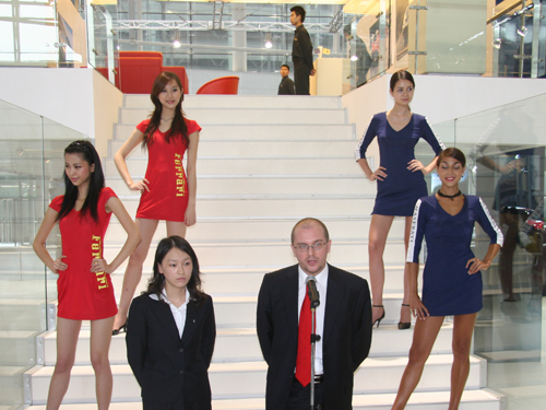 中新网7月25日电 (郜威伟)第四届广州车展于7月25日正式对普通观众开放,展台上香车美女吸引人们眼球。